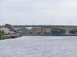 In late 2005, after years of planning, Glasgow City Council began work on a new road bridge, the Clyde Arc, (commonly known locally as the "Squinty Bridge") over the Clyde alongside the Kingston which connects Finnieston on the north bank to Kinning Park on the south. The first new road crossing of the Clyde in Glasgow since the Kingston Bridge in 1970, the new structure is intended to divert local traffic away from using the M8 to cross the river. It opened in September 2006. On the night of 14 January 2008, one of the support cables snapped, closing the Clyde Arc for all traffic for months. It reopened in June 2008.