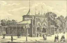 A concert hall was among the attractions when Tivoli Gardens first opened its doors in 1843. It was a rectangular, wooden building designed by Harald Conrad Stilling.[1]