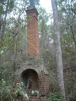 The Smelter 2 site has a standing chimney connected by the stone base of a short horizontal flue to a standing brick smelter-support structure, which presumably supported a water-jacket furnace. This structure is 9 metres (30 ft) long by 2.5 metres (8 ft 2 in) wide and 3 metres (9.8 ft) tall. It is partitioned into two sections, with a sloping internal floor inclined down to two access holes in the front face at ground level. Part of the front wall of the structure has collapsed. A series of engine footings are located near the smelter, and a large boiler with tall chimney attached has fallen off one of these engine beds. The associated slagheap extends over an area 48 by 32 metres (157 by 105 ft), and consists of pavement-like slag poured into formwork, as evidenced on other water-jacket smelter sites. The slag formwork at the edge of the slagheap is old railway rails.[1]