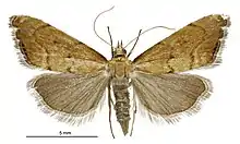 2. โ†‘ Meyrick, E. (1885). "Description of New Zealand Microlepidoptera. V [VI]. Pyralidina". New Zealand Journal of Science. 2. Retrieved 20 January 2018.