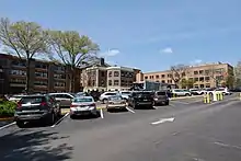 It quickly outgrew these facilities, and so its current campus on St. Andrew's Lane was purchased and a new building constructed.[3] The building, to be named North Country Community Hospital, was three stories with space for 112 beds, with a separate nurses' home and service building.[4] Its architect was Peabody, Wilson & Brown.[1] The hospital was funded by subscription, with wealthy donors providing three-quarters of the $1,250,000, and the general public providing the rest.[5] A total of 5,000 people donated towards the effort.[6] At the cornerstone-laying ceremony in 1926, a significant number of its doctors resigned to protest wealthy donors on the new hospital's board handpicking its medical board.[5] It opened on September 15, 1927, with its first birth occurring less than an hour after its opening.[7]