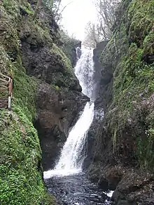 The Waterfall Walkway, opened 80 years ago, has been significantly upgraded along its 3-mile length which passes through a National Nature Reserve. There are three waterfalls, forest trails and riverside walks, as well as a visitor centre, shop, and seasonal caravan/camping site and restaurant.[1]