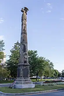 • Civil War Monument – A limestone obelisk at the intersection of Glen, South, and Bay streets, the monument was dedicated in 1872 to honor the 644 men from Queensbury who served in the Civil War. Ninety-five names, those of the men who died, are engraved on the monument.[17] Many battles of the war are listed.