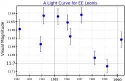 A visual band light curve for EE Leonis, adapted from Weis (1994)[1]