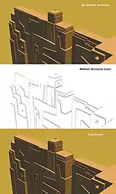 Global illumination[1] (GI), or indirect illumination, is a group of algorithms used in 3D computer graphics that are meant to add more realistic lighting to 3D scenes. Such algorithms take into account not only the light that comes directly from a light source (direct illumination), but also subsequent cases in which light rays from the same source are reflected by other surfaces in the scene, whether reflective or not (indirect illumination).