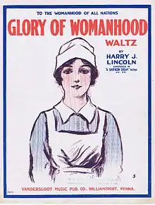 Glory of Womanhood is a World War I song written and composed by Harry J. Lincoln. It was first published in 1917 by Vandersloot Music Publishing Company in Williamsport, PA. The cover features the drawing of a nurse and is dedicated to the womanhood of all nations.[1]