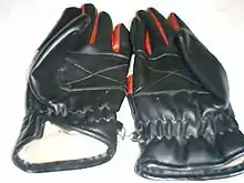 - Leather gloves: These gloves are worn by criminals because the tactile properties of the leather allow for good grip and dexterity. These properties are the result of the grain present on the surface of the glove. The grain makes the surface of the leather unique to each glove. Over time, the pores and grain of leather gloves will pick up dirt and grease from surfaces that they have touched or handled. The dirt and grease can in return help to create prints on surfaces. Also, unlined gloves provide the most dexterity but can over time become saturated with the oils and sweat of the wearer's hands. This helps to increase the gripping properties of the gloves[27] but causes the gloves to leave prints.[28] A print that contains the glove wearer's sweat and oils will contain their DNA, which can incriminate them. Investigators are able to dust for the marks left behind from leather the same way they dust for fingerprints.[21][29]