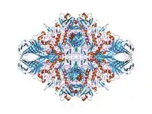 10. 1 2 3 Jacobson RH, Zhang XJ, DuBose RF, Matthews BW (June 1994). "Three-dimensional structure of beta-galactosidase from E. coli". Nature. 369 (6483): 761–6. Bibcode:1994Natur.369..761J. doi:10.1038/369761a0. PMID 8008071. S2CID 4241867.