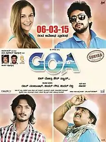 Goa is a 2015 Indian Kannada romantic comedy film directed by Surya. It stars Komal Kumar, Tarun Chandra, Srikanth, Sharmila Mandre, Sonu and British theatre artiste Rachel Wise in lead roles.[1] The film is an official remake of the Tamil film of the same title (2010) directed by Venkat Prabhu.[2] The film features the music composed by Arjun Janya whilst the cinematography is by Rajesh Katta.