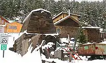 Gold Hill is located to the northwest of Boulder, perched on a mountainside above Left Hand Canyon at an elevation of 8,300 feet. Originally a mining camp, it was the site of the first major discovery of gold during the 1859 Colorado Gold Rush and remained an important mining camp throughout the late 19th century, with a population approaching 1500 at its height, before falling into decline. It has been revived somewhat in recent years as a quiet isolated haven, with no paved streets, but easily accessed by dirt roads. The town contains numerous historic wooden structures, some restored in recent years, as well as decaying ruins from its mining heyday. It has a small museum and two-room schoolhouse, the Gold Hill School, which since 1873 has been the oldest continuously operating public school in Colorado. Other businesses include a General Store and a restored inn listed on the National Register of Historic Places. The town is laid out on a small grid of dirt streets.
