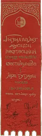 - ↑ "Фестиваль, день первый". Бакы (in Russian): 3. 23 October 1969.