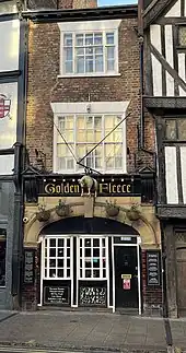 The Golden Fleece was mentioned in the York City Archives as far back as 1503.[1] The back yard of the inn is named "Lady Peckett's Yard" after Alice Peckett, the wife of John Peckett who owned the premises as well as being Lord Mayor of York around 1702.[2]