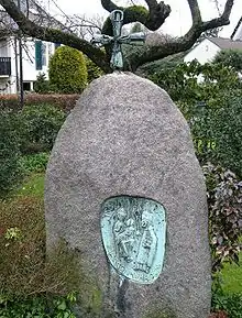 Another procession in which the Madonna was shown took place every year on the Monday preceding Ascension Day. On this day the nuns, canons and scholars of the abbey and its daughter house in nearby Rellinghausen held a formal meeting with the monks of Werden Abbey and took the Golden Madonna along. The two processions met about halfway between the two monasteries at a chapel dedicated to Saint Mark in what is today the neighbourhood of Essen-Bredeney. A memorial cross commemorates the place of these meetings today.