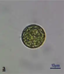 The precise taxonomic status of Golenkinia is somewhat unclear due to the large number of revisions it has undergone.[7] It has traditionally been classed with other round, spine-bearing green algae, many of which are now assigned to the class Trebouxiophyceae.[8]