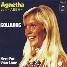 The B-side of Golliwog was also recorded in English as Here For Your Love ("Tio Mil Kvar Till Korpilombolo"), at the marketing suggestion of Fältskog's record company, Cupol. During Fältskog's time with ABBA, she had been against releasing English versions of her songs, while lyricist Bosse Carlgren was not too keen on his English lyrics; he had reportedly thought of the word as a "ragdoll" when he looked up the dictionary.[1]