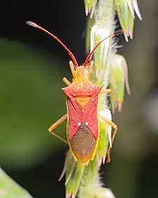 Gonocerus acuteangulatus is a herbivorous species of true bug in the family Coreidae.[1] It is commonly known as the box bug in the UK as it once only occurred in Box Hill in Surrey where it fed on box trees.[2]