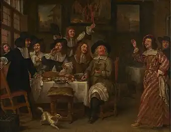 Gonzales Coques[1] (between 1614 and 1618 – 18 April 1684) was a Flemish painter of portraits and history paintings.[2] Because of his artistic proximity to and emulation with Anthony van Dyck he received the nickname de kleine van Dyck (the little van Dyck). Coques also worked as an art dealer.[3]