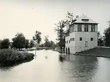 In the 1970s and 1980s, economic downturn negatively affected the park, making it unsafe and unmaintained. In the mid-1980s, the Columbus Recreation and Parks Department began installing train tracks in the park (from a former Columbus Zoo train) and neighbors reacted and began organizing to have a say in the park's direction.[10] In 1987, the Friends of Goodale Park was officially formed to maintain and preserve the park. In 2004, they began the restoration of the Goodale Gates, erected during the park's time as Camp Jackson.[11]