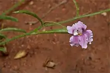 Goodenia vilmoriniae is a species of flowering plant in the family Goodeniaceae and is endemic to arid areas of Central Australia. It is an ascending to erect annual herb with linear to lance-shaped leaves at the base of the plant, and racemes of pale blue to lilac flowers.