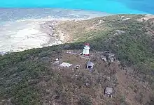 Also in the premises are a timber storage shed a timber fibro-cement clad lighthouse keeper's cottage,[4] now in ruins.[6] Both of them are white with green painted galvanized iron roofs.[4]