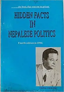 - ↑ Nepalese Politics, Hidden Facts in. Hidden Facts in Nepalese Politics. Kathmandu: Gopal Gurung. pp. Preface.