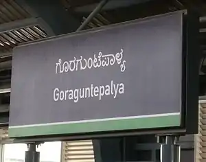 Goraguntepalya is an elevated metro station on the North-South corridor of the Green Line of Namma Metro serving the area of Goragunterpalaya in Bangalore, India. It was opened to the public on 1 March 2014.[1][2]