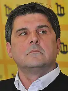 In September 2016, a group of dissident Green Party members sought to remove Čabradi as party president. The rebels, led by Slavica Vasilijević, charged that Čabradi was governing the party in an arbitrary fashion and particularly opposed his decision to support a resolution on the Srebrenica massacre that, in their view, described the Serbian people as genocidal.[7] The Slovak Party, which also opposed the Srebrenica resolution, urged Čabradi to resign his mandate.[8][9] Online sources do not indicate exactly how this situation was resolved, though it seems to have resulted in a party split. By March 2017, the Green Party's website continued to list Čabradi as president,[10] while the website for a rival group called the "Green Party of Serbia" listed Vasilijević as president.[11]