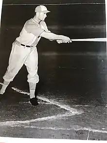 In 1939, the outfielder returned, playing for the Pampa Oilers of the West Texas–New Mexico League. He would spend most of the rest of his career in the WTNML. In his first year back, he hit .392 with 44 home runs, 60 doubles, 207 hits, a .786 slugging percentage and 415 total bases in 135 games. He led the league in hits, doubles, home runs, runs scored (152), RBI (189), total bases and slugging percentage and he tied Sammy Hale for the league lead in batting average to win the Triple Crown. His hitting was so prodigious that he was considered the "bane of pitchers the league over" and "one of the most feared hitters in the country."[1] Joining the Borger Gassers in 1940, Nell hit .389 with 40 home runs, 48 doubles, 15 triples, 206 hits, a .764 slugging percentage and 404 total bases. He won another home run title, led the league in RBI (175), total bases and slugging and — after taking over for Pete Susko as team manager partway through the season — led the team to a league championship victory. Back with Borger in 1941, Nell hit .316 with 28 home runs in 121 games, winning another home run title. He again served as the club's manager.