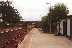 It consists of two platforms, one on the down passing loop. There is a water tower, still used by occasional steam trains, at the north end of Platform 1. There is also a siding, formerly a loop, cut back to allow the platforms to be extended in early 2006. This is regularly used when there are engineering works on the line.