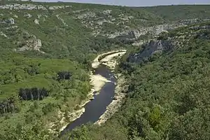 The Gorges du Gardon form a canyon carved out by the river Gardon,[1] a tributary of the Rhône with its source in the Cévennes. They are located in the heart of the Gard department in the Occitanie region.
