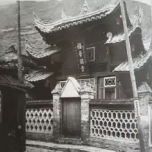 In 1905, James Huston Edgar (Chinese name: 葉長清; 1872–1936), an Australian-born New Zealand CIM missionary,[5] arrived in Kangding and established the traditional Sichuanese-style Gospel Church.[4][6] Apart from a vertical board inscribed with its name Gospel Church (福音講堂; lit. 'Gospel Lecture Hall' or 'Lecture Hall for Evangelisation'), the building is hardly distinguished from any Buddhist or Taoist temple at the time.