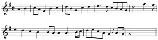 g4. a8 | b4 a c b | a8 (fis) g4 e' d | c b a b8 (g) | d'2 \bar "|" \break