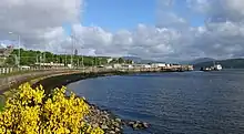 As part of a new one-way system completed in 2016, the station approach was reorganised, with new car parking and a promenade along past Kempock Point.