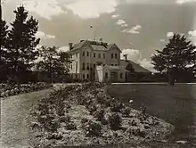 The Commonwealth Government bought Yarralumla from Campbell in 1913. It decided to use Campbell's vacated home as a temporary residence for the governor-general of Australia. Consequently, another three-storey block was erected behind the existing one and a new entrance portal was constructed on the southern frontage. A stable block was constructed to the west of the structure and cottages built for staff. For a period the house was used as the residence of John Goodwin, the officer-in-charge of the Federal Capital Territory.[3] Since the 1920s the building has been extended and refurbished several more times; but the basic structure of the 1891 house can still be seen clearly when viewed from the south.