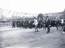 Relations during the half-century after 1867 between the two parts of the dual monarchy featured repeated disputes over shared external tariff arrangements and over the financial contribution of each government to the common treasury. These matters were determined by the Austro-Hungarian Compromise of 1867, in which common expenditures were allocated 70% to Austria and 30% to Hungary. This division had to be renegotiated every ten years. There was political turmoil during the build-up to each renewal of the agreement. By 1907, the Hungarian share had risen to 36.4%.[21] The disputes culminated in the early 1900s in a prolonged constitutional crisis. It was triggered by disagreement over which language to use for command in Hungarian army units and deepened by the advent to power in Budapest in April 1906 of a Hungarian nationalist coalition. Provisional renewals of the common arrangements occurred in October 1907 and in November 1917 on the basis of the status quo. The negotiations in 1917 ended with the dissolution of the Dual Monarchy.[19]