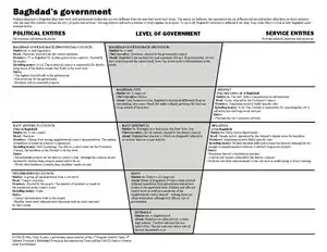 Baghdad's governments can be divided into three categories with different – although sometimes overlapping – responsibilities: Political subdivisions, political entities and service entities.