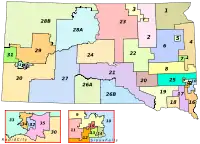 Map showing the 35 legislative districts of South Dakota from 2008. Every district elects one senator and two representatives to the state legislature.