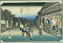 Goyu-shuku in the 1830s, as depicted by Hiroshige in the Hōeidō edition of The Fifty-three Stations of the Tōkaidō 1831–1834)