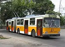 A 1980-built Gräf & Stift trolleybus in service in 2003 in Romania