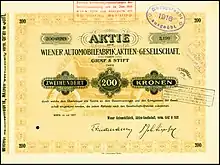 Share of the Wiener Automobilfabrik AG vorm. Gräf & Stift, issued July 1907