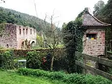 All that remains of the monastic structures is the prior's lodging, now used for guests, the ruins of the church and the perimeter wall with its archway.[1]