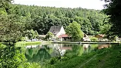 Kartause Grünau with fish pond and main building (now a restaurant)