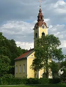The local church is dedicated to Saint Helena and the current building is from the late 17th century with later alterations, but is likely built over earlier foundations with a reused stone in the belfry inscribed with the date 1426.[2]