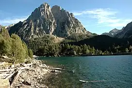 Gran Encantat is a mountain peak of Catalonia, Spain. Located in the Pyrenees, it is the higher of the two peaks (the other being the Petit Encantat) of the Els Encantats mountain, with an altitude of 2,748 metres (9,016 ft) above sea level. It is the tallest point on the Els Encantas twin peaks, the shorter being Petit Encantat, which at 2,733 metres (8,967 ft) is only 12 metres (39 ft) shorter than Gran Encantat. Gran Encantat towers over the picturesque reservoir of Estany de Sant Maurici, and to the east Pica d'Estats (the tallest mountain in Catalonia) can be seen. Gran Encantat is also an incredible climbing destination, with many people climbing, hiking and scrambling in the summer. The mountain is ideal for these activities as it is around 5 kilometres from the small town of Espot. The route from Espot is easily walkable alongside the Riu Escrita river which runs through a classic Pyrenean valley.