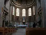 The church has a Greek cross plan. semicircular apse has five arched windows, above which, within a frame, is the inscription SANCTA MARIA MATER DEI ORA PRO NOBIS (Holy Mary, Mother of God, pray for us). In the apse there is a fresco of the painter Federico Morgante.
