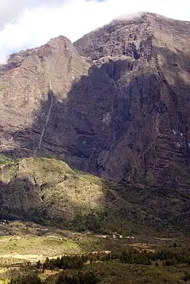 ![]() Grand Bénare seen from Mafate with the hamlet of Marla in the foreground | |