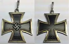 The Grand Cross of the Iron Cross was twice the size of the Iron Cross and was worn from a ribbon around the neck. The later Knight's Cross of the Iron Cross, instituted in 1939, was also worn from the neck; it was smaller than the Grand Cross but larger than the Iron Cross.