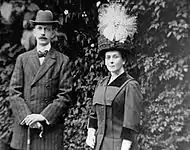 Although he was not consulted in the engagement of his daughter Grand Duchess Maria Pavlovna to Prince Wilhem of Sweden, Paul attended the wedding on 3 May [O.S. 20 April] 1908. That same year, Grand Duke Paul, Olga and their three children visited Russia together for the first time. Shortly after, they returned to Paris but their son, Vladimir, stayed in Russia and became a student in the Corps des Pages.[39][40] In 1912, on the occasion of Dmitri reaching his majority, Tsar Nicholas II, finally relented and pardoned his only surviving uncle, restoring Grand Duke Paul titles and privileges. He also recognized as valid Paul's second marriage.[41] However, Grand Duke Paul decided to remain living in France. In 1913, Paul visited Russia, once again, to take part in the celebration for the 300th anniversary of the Romanov family on the Russian throne.[41] Grand Duke Paul moved back permanently to Russia only when he finished a house for himself and his family at Tsarskoe Selo in May 1914.[42]