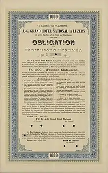 Bond of the Grand Hotel National in Lucerne, issued 1. April 1904