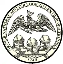 The Grand National Mother Lodge "The Three Globes" (Große National-Mutterloge „Zu den drei Weltkugeln“) is the oldest recognized Masonic Grand Lodge in Germany, being found in Berlin in 1740.[1] In 1933, being one of eight national Grand Lodges, it had 22,700 members in 177 lodges. in 1935 freemasonry in Nazi Germany was suppressed. The Mother Lodge "The Three Globes" was reactivated in 1946 and is currently a member of the umbrella organization United Grand Lodges of Germany.